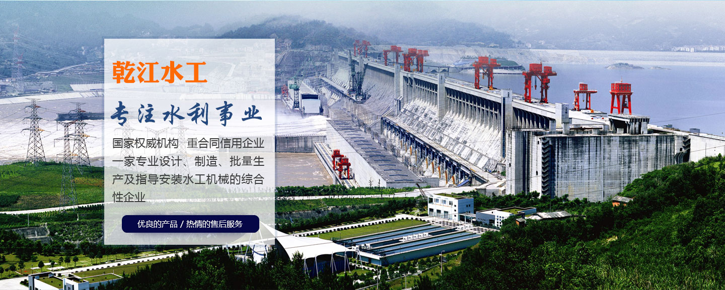 • A、乾江水工是一家專(zhuān)業(yè)設(shè)計(jì)、制造、批量生產(chǎn)及指導(dǎo)安裝水工機(jī)械的綜合性企業(yè)。